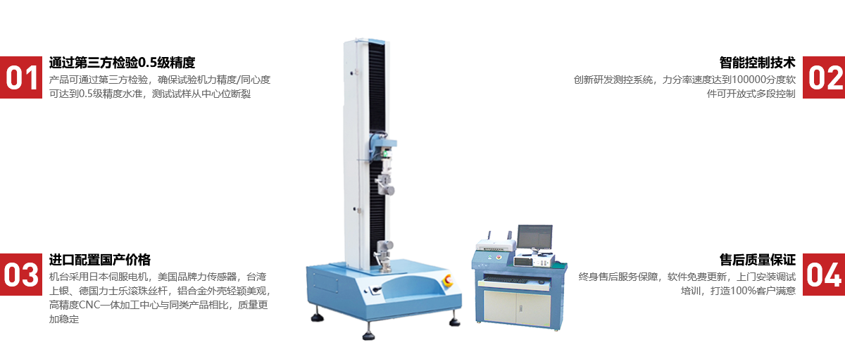 该系列产品采用全电脑控制,板载USB2.0介面,多语言切换,精度高,易于操作,可满足多国标准,广泛应用于橡胶、塑胶、电线电缆、纺织物、防水材料、 无紡布等非金属材料及金属丝、金属箔、金属板材、金属棒等材料的力学性能测试、分析与研究,搭配不同夹具可完成各种材料的拉伸、压缩、弯曲、剪切、撕裂、剥离等多种测试试验项目。